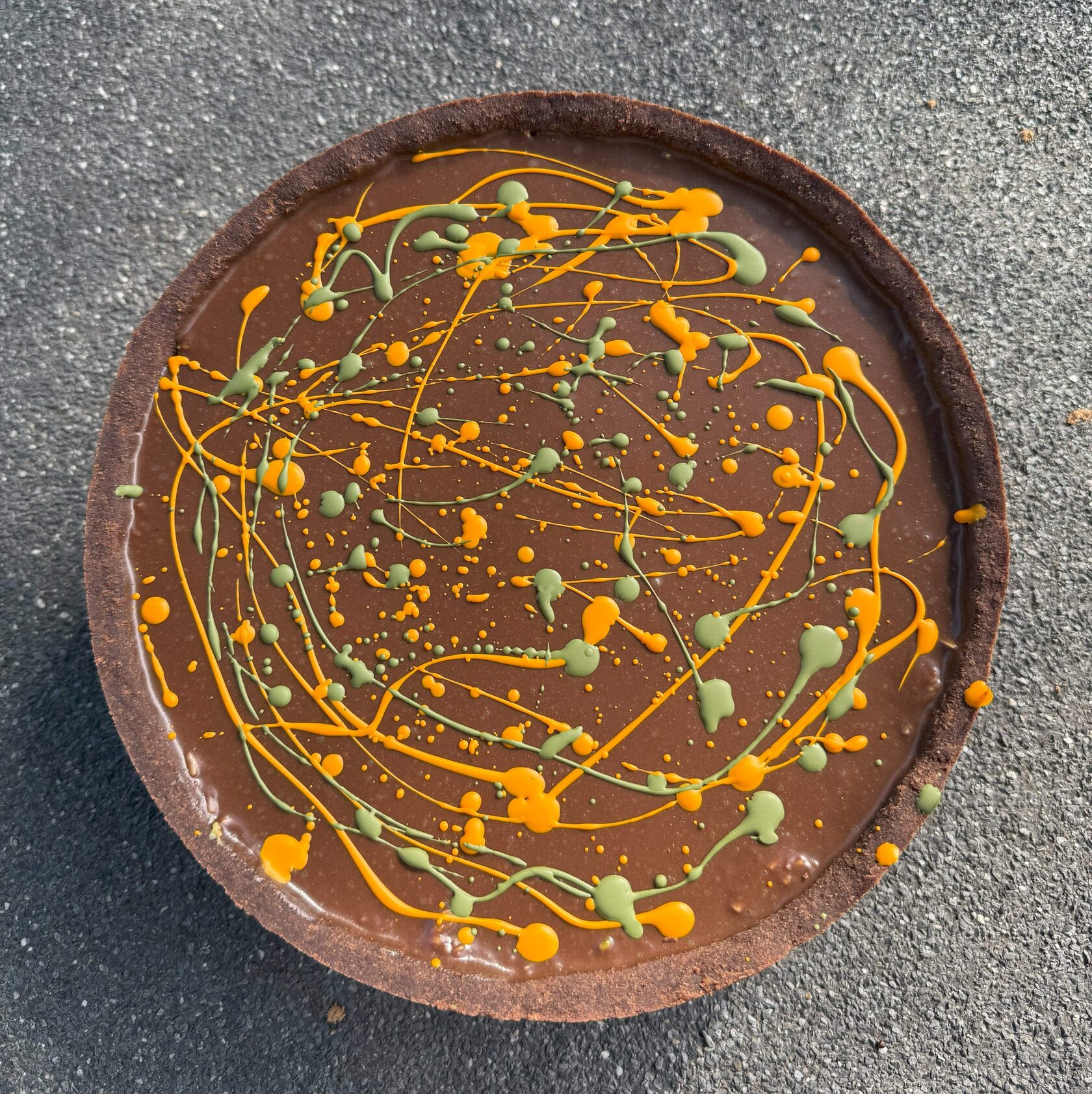 Пісочна шоколадна основа, крем-чіз з молочним шоколадом, катаїфі з фісташкою